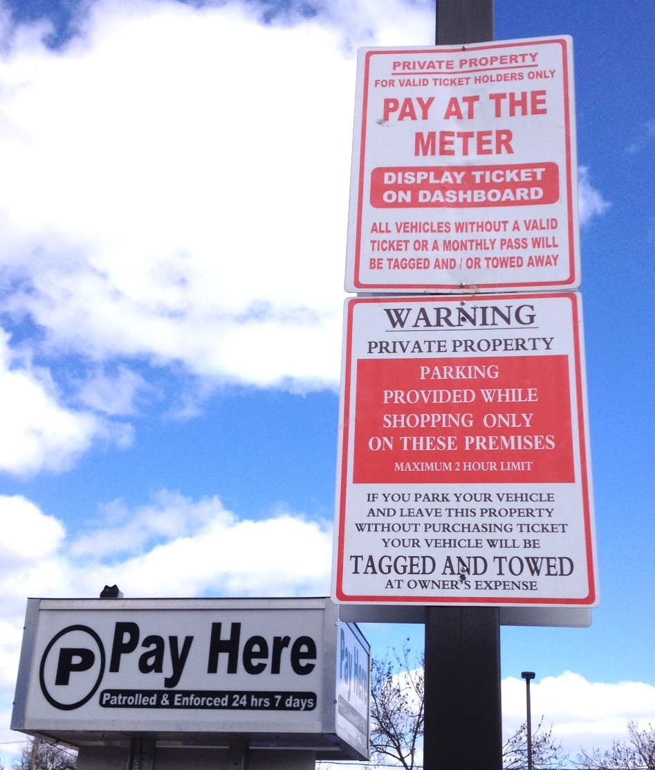 This is at a grocery store near my house. It directs people to pay for parking. And it notes that parking is for shoppers. But what’s less clear is that parking is free if you’re shopping. So I regularly see people standing staring at the sign, trying to interpret what it means, whether it applies to them, etc.