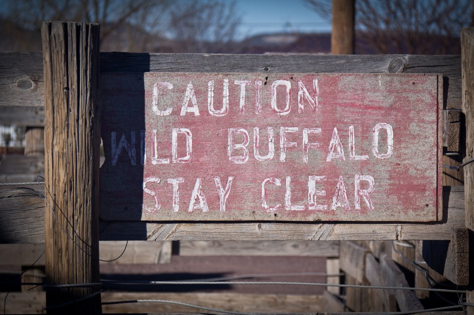 Perhaps it was warning the buffalo to avoid the tourists, just missing punctuation? “Caution, wild buffalo, stay clear!”