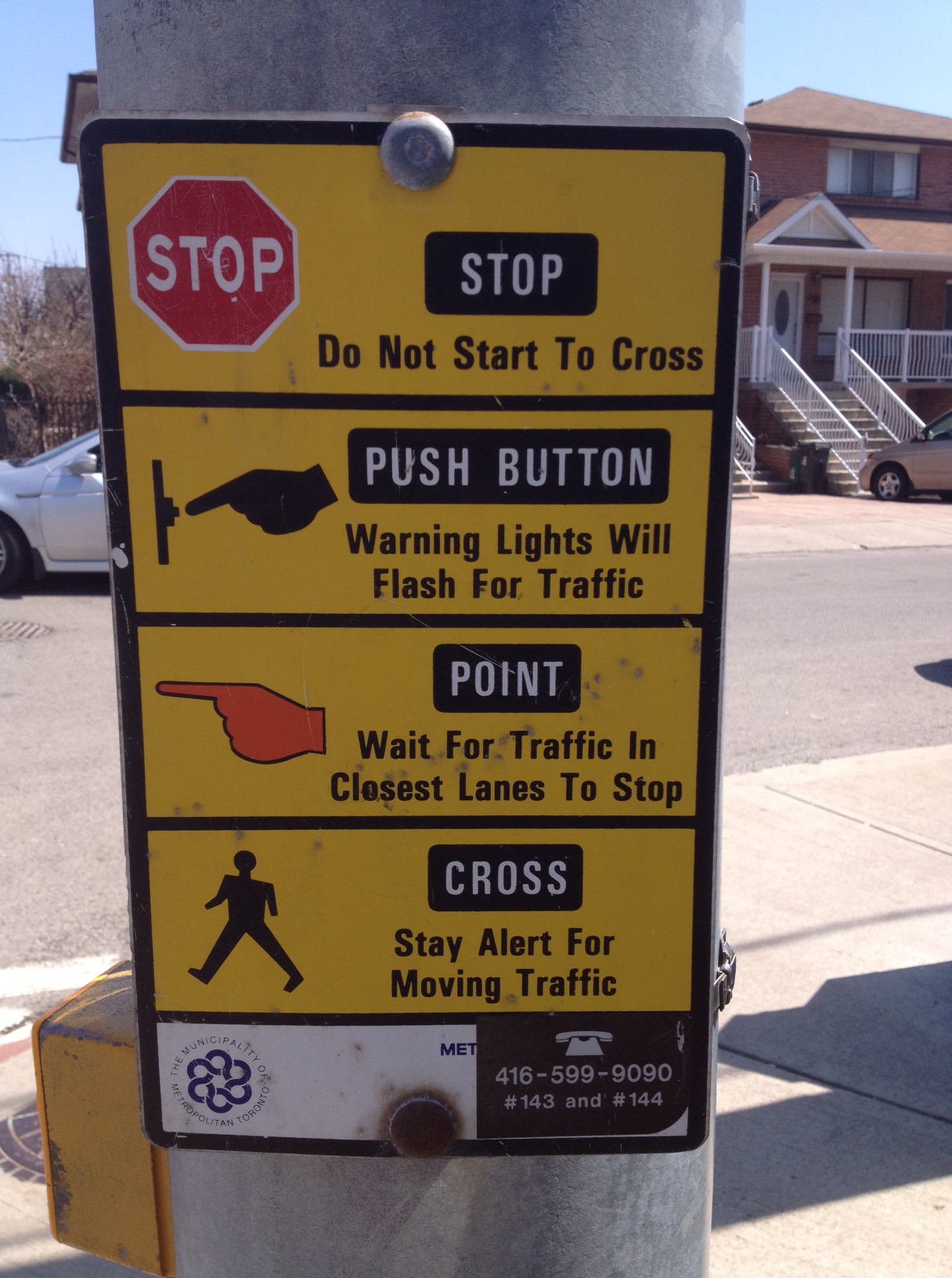 Interestingly, the procedure given on this sign is one I have literally never seen implemented by anyone here in Toronto.
