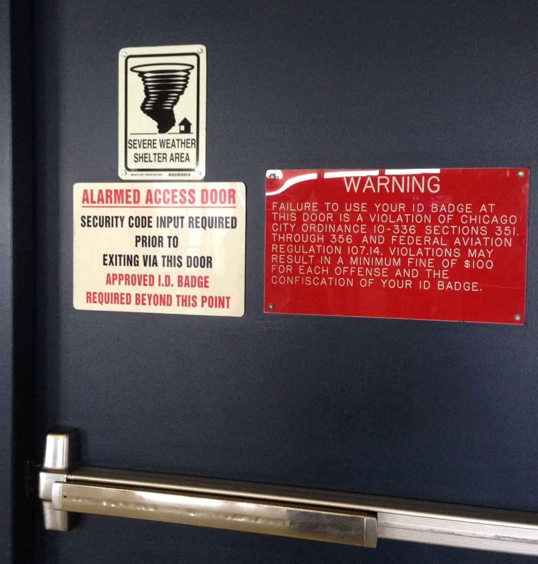 Here’s yet another example of what I lovingly refer to as a ‘normatively rich environment,’ in this case an exit door at Chicago O’Hare International Airport. As always with such environments, the first thing to note is that richness really means complexity, which means important normative messages are easy to misunderstand, or miss altogether.