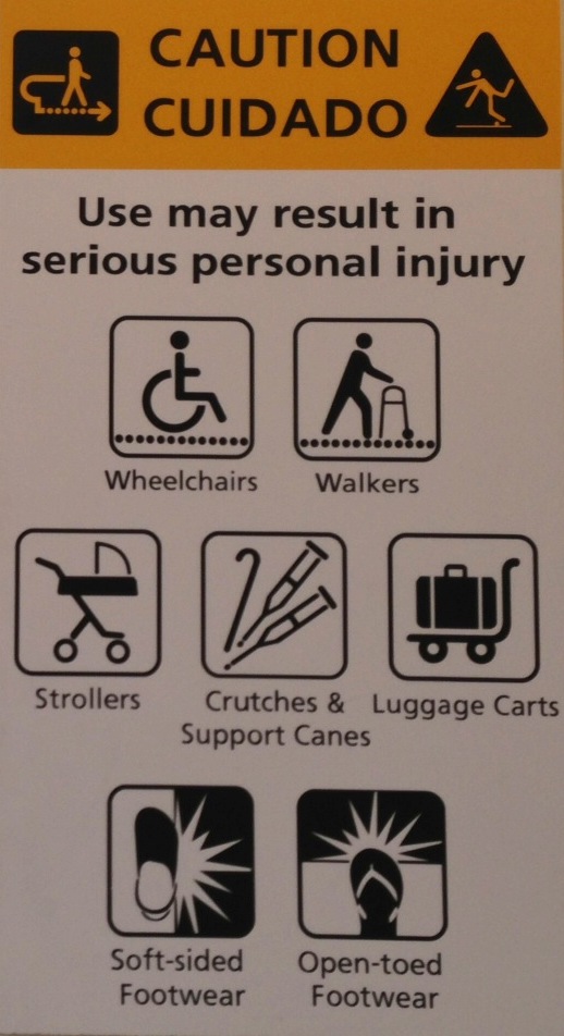 walkway_warningHere’s a sign at Philadelphia International Airport, which seems to suggest that the world is a very scary place. All sorts of things are apparently seriously dangerous, including wheelchairs, walkers, and (gasp!) open-toed footwear.