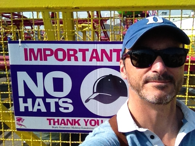 This sign is posted by the lineup for a small roller-coaster at the Canadian National Exhibition, in Toronto. It says “No Saving Space in Line. Leaving the line forfeits your spot. Thank you.”