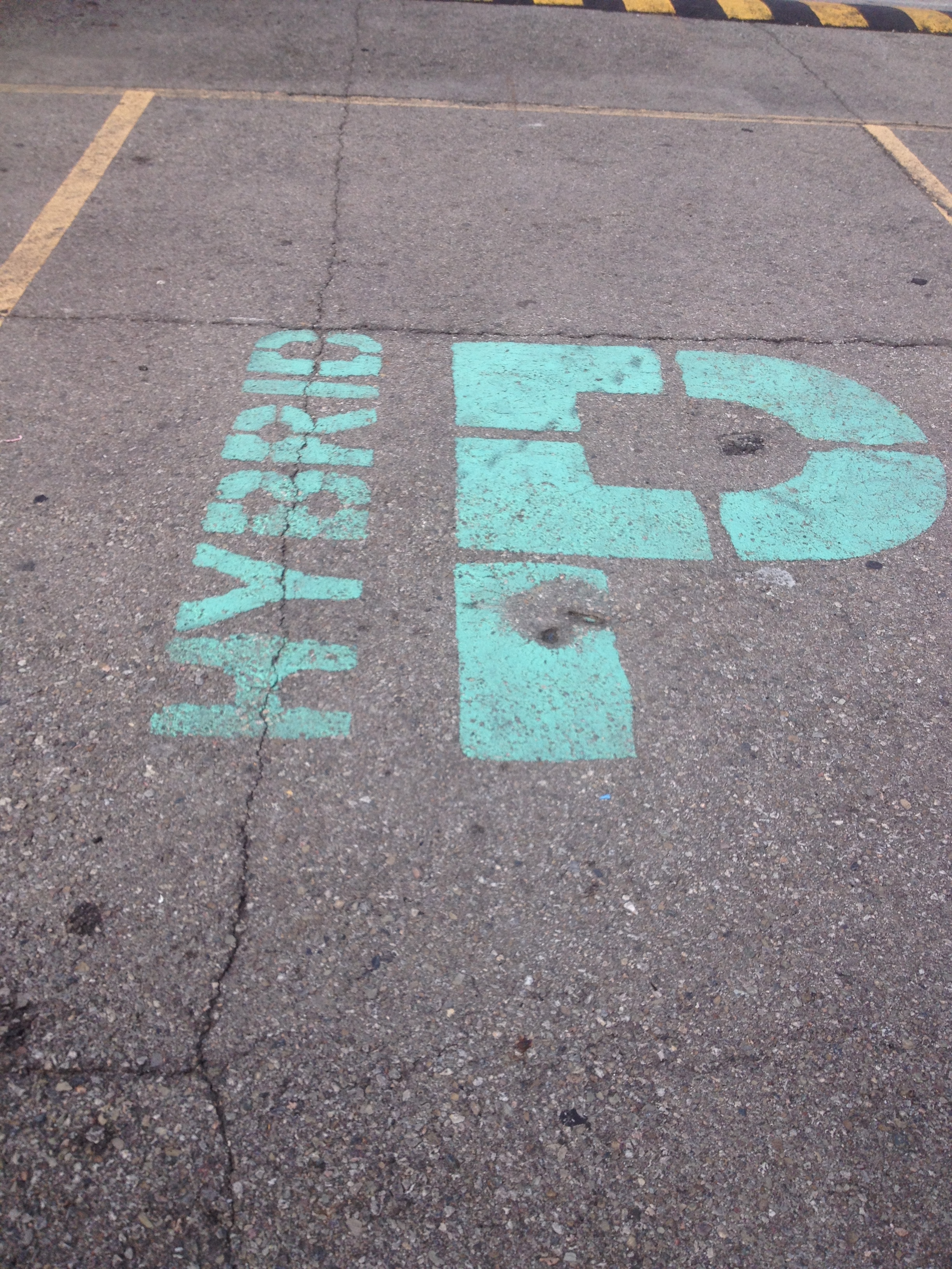 I like the way the word “hybrid” is visually integrated with the giant letter “P” (universally recognized, in the English-speaking world, anyway, as meaning “Parking”).