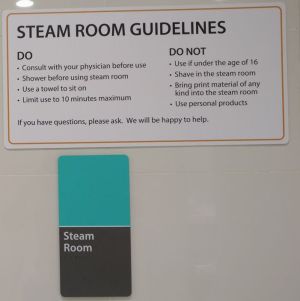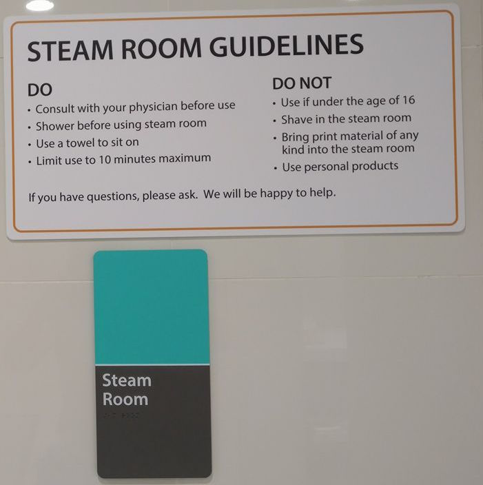 As the contributor of this photo says, “Imagine how annoyed doctors would be if everyone started booking appointments to get permission to have a steam bath.” (Yes, this sign is likely intended to mitigate liability. But imagine if it were taken seriously!)